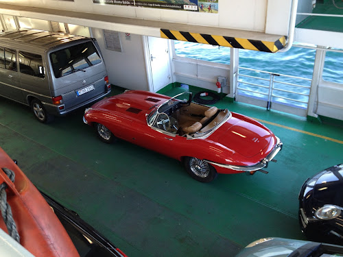 We then rode around Lake Garda towards the NE side where we caught up a ferry that took us to the NW side. We love ferries and it was a really beautiful sunny day. In this specific ferry ride there were a number of beautiful cars. My favorite was a red, "topless" Jaguar E. It had German plates and it was a gem.